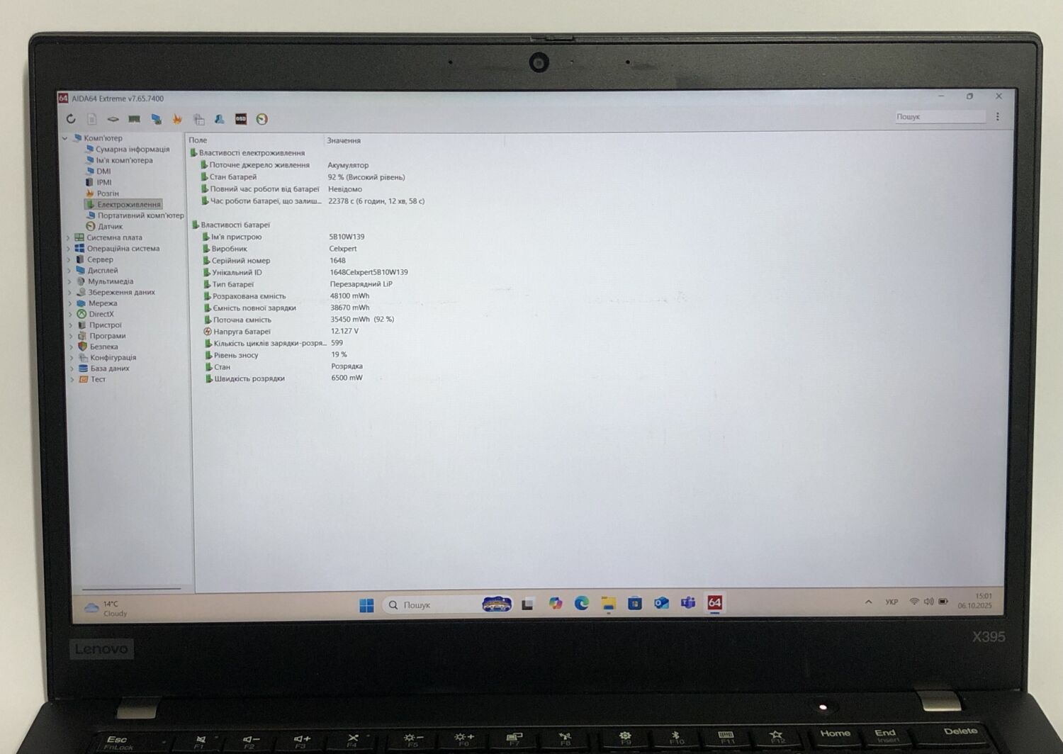 Ультрабук Б-клас Lenovo ThinkPad X395 / 13.3" (1920x1080) IPS Touch / AMD Ryzen 3 PRO 3300U (4 ядра по 2.1 - 3.5 GHz) / 8 GB DDR4 / 256 GB SSD NVMe / AMD Radeon Vega 6 Graphics / WebCam / Win 10 Pro б/в