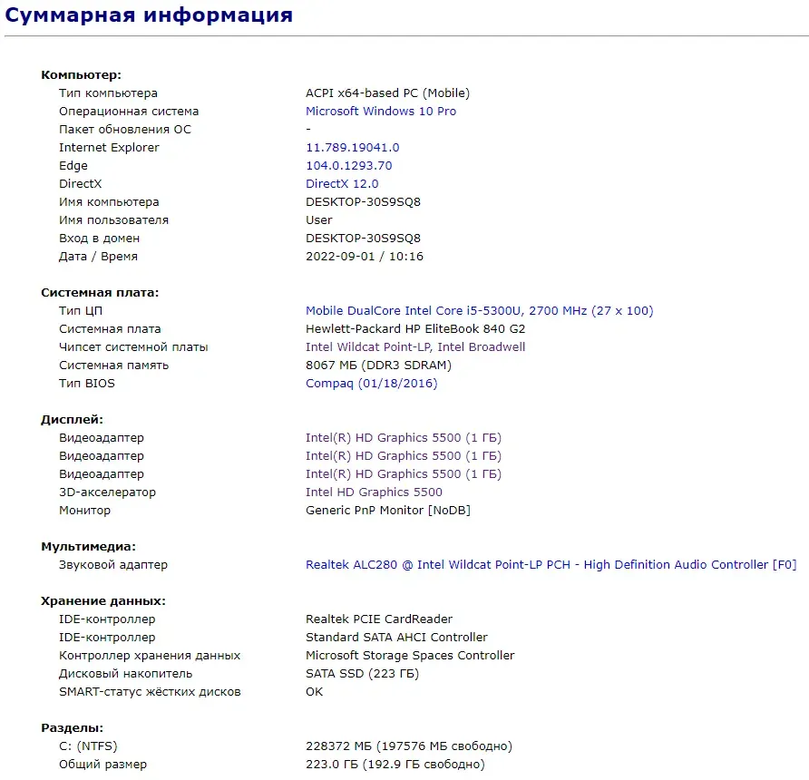 - Модель: HP EliteBook 840 G2