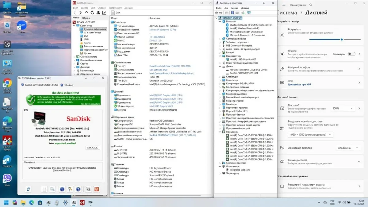 - Графіка: інтегрована Intel UHD Graphics 620 (до 1792 МБ з ОЗУ)