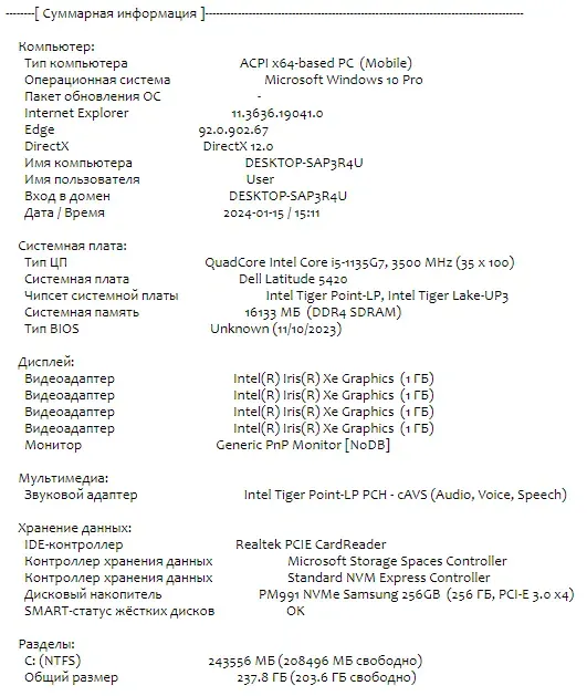 - Модель: Dell Latitude 5420