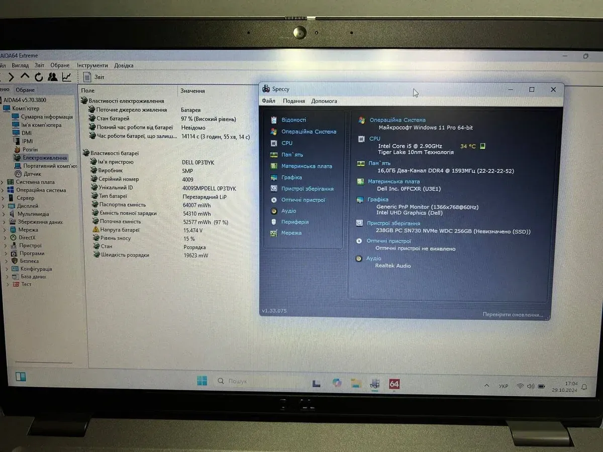 - Порти: 2x USB 3.1, 2x USB Type-C, 1x HDMI, 1x Audio, 1x LAN (RJ-45), 2x Card Reader