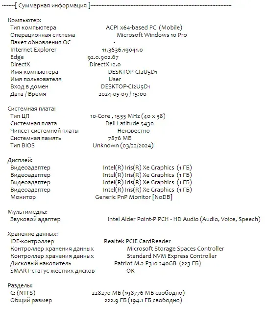 - Постійна пам'ять: 240 GB SSD M.2 NVMe (Patriot M.2 P310)