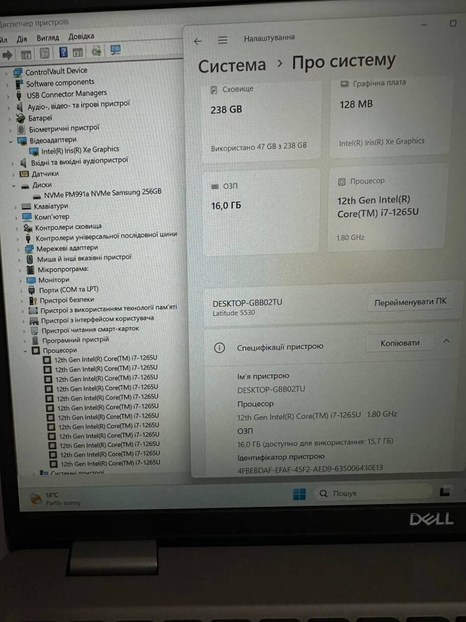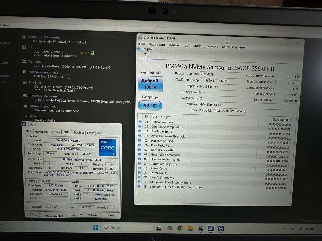 - Процесор: Intel Core i7-1265U (10 (12) ядер по 3.6 - 4.8 GHz), 12 MB Smart Cache