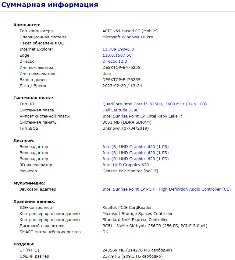 - Постійна пам'ять: 128 GB SSD (SK hynix SC311)