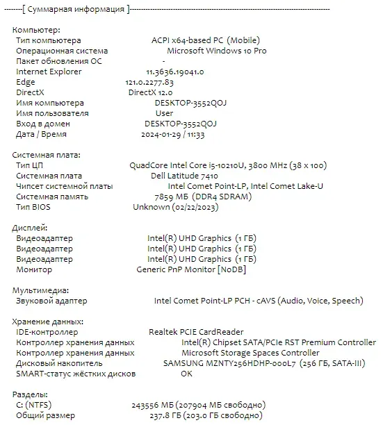 - Операційна система: Windows 10 активована вшитим в BIOS ключем