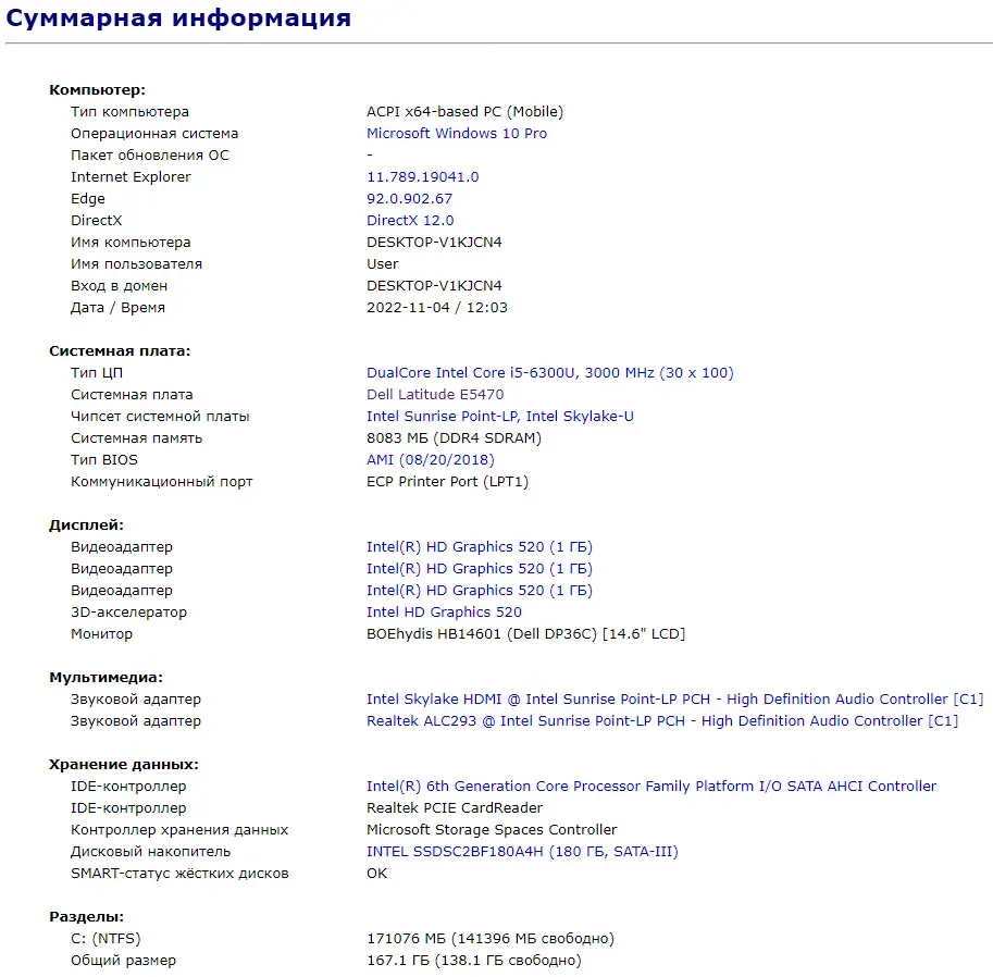- Процесор: Intel Core i5-6300U (2 (4) ядра по 2.4 - 3.0 GHz), Cache Memory 3 MB