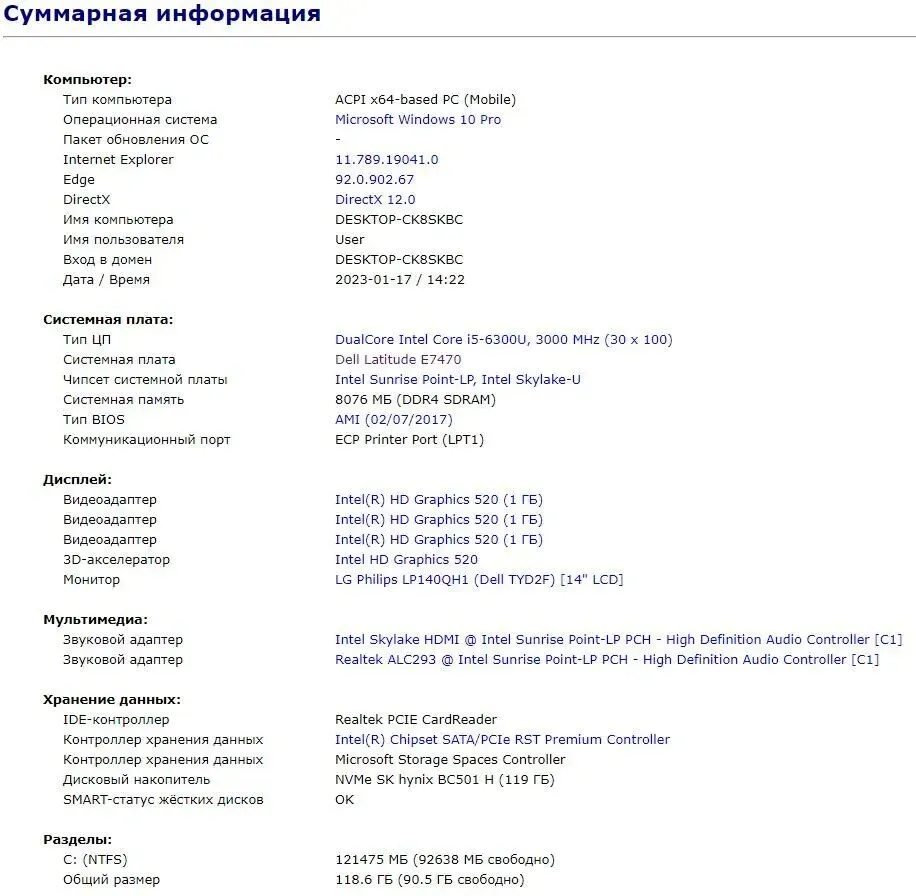 - Процесор: Intel Core i5-6300U (2 (4) ядра по 2.4 - 3.0 GHz), 3 MB Smart Cache