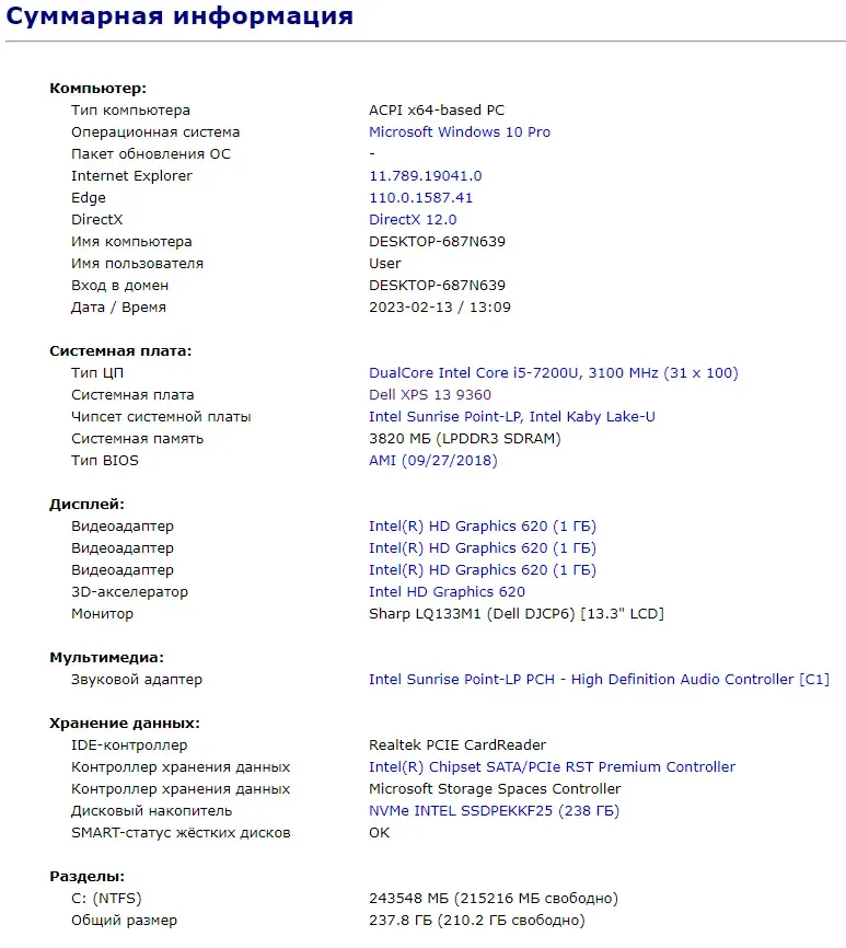 - Постійна пам'ять: 240 GB SSD M.2 NVMe