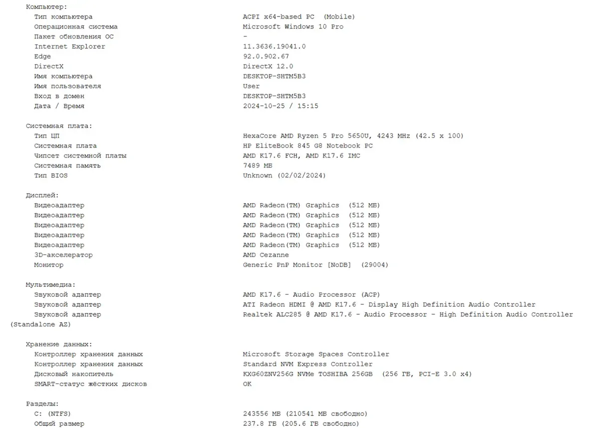 - Процесор: AMD Ryzen 5 Pro 5650U (6 (12) ядер по 2.3 - 4.2 GHz), 16 MB Cache