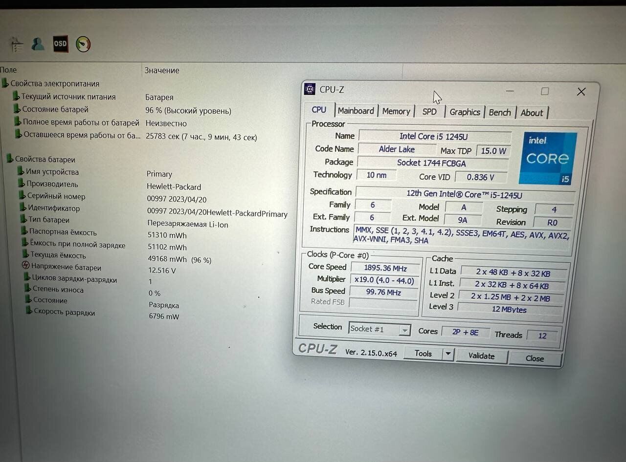 - Процесор: Intel Core i5-1245U (10 (12) ядер по 1,2–4,4 ГГц), 12 МБ Smart Cache