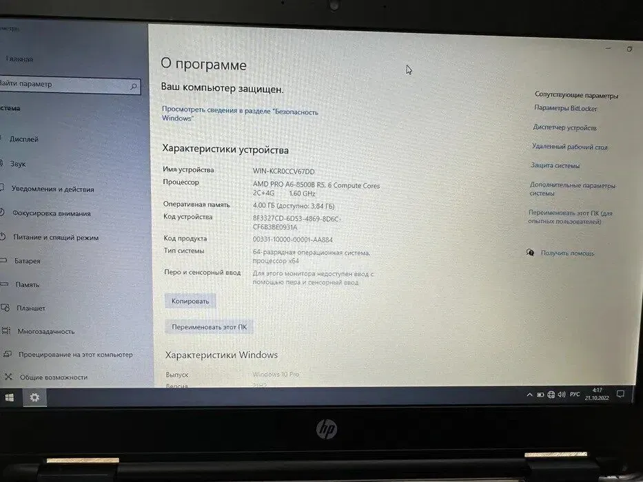 - Процесор: AMD Pro A6-8500B (2 ядра по 1.6 - 3.0 GHz), 1 MB Cache