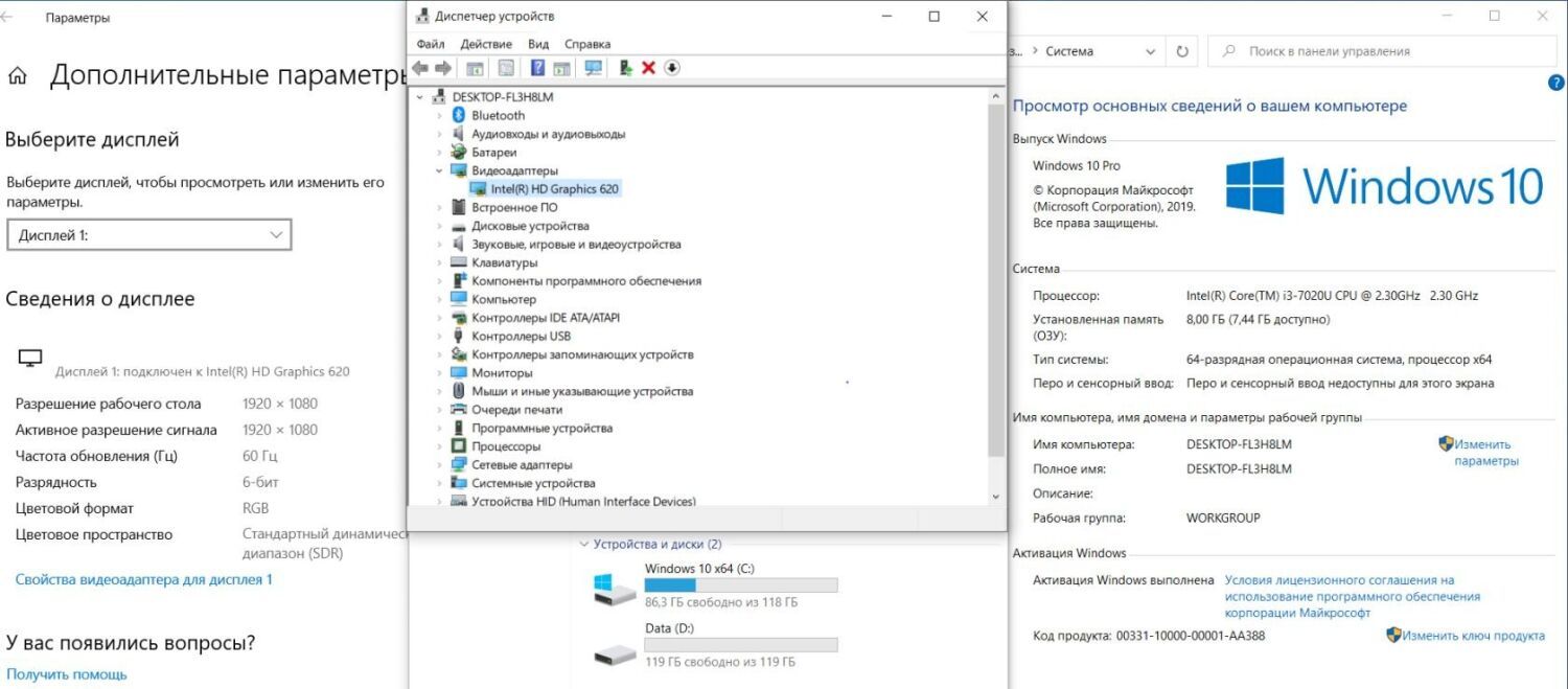 - Процесор: Intel Core i3-7020U (2 (4) ядра по 2.3 GHz), 3 MB Smart Cache