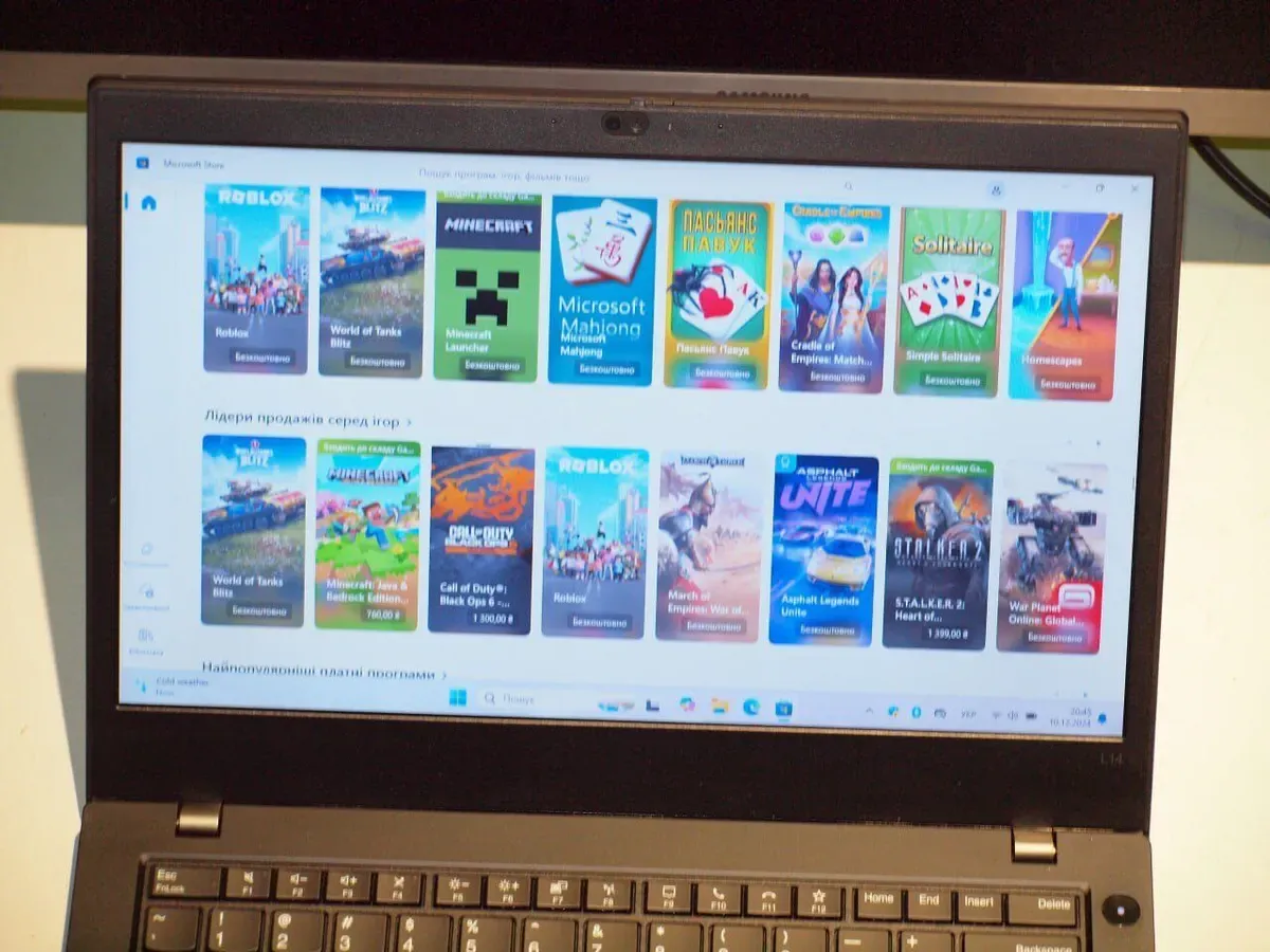 - Комплектація: ноутбук, зарядний пристрій, наклейки на клавіатуру