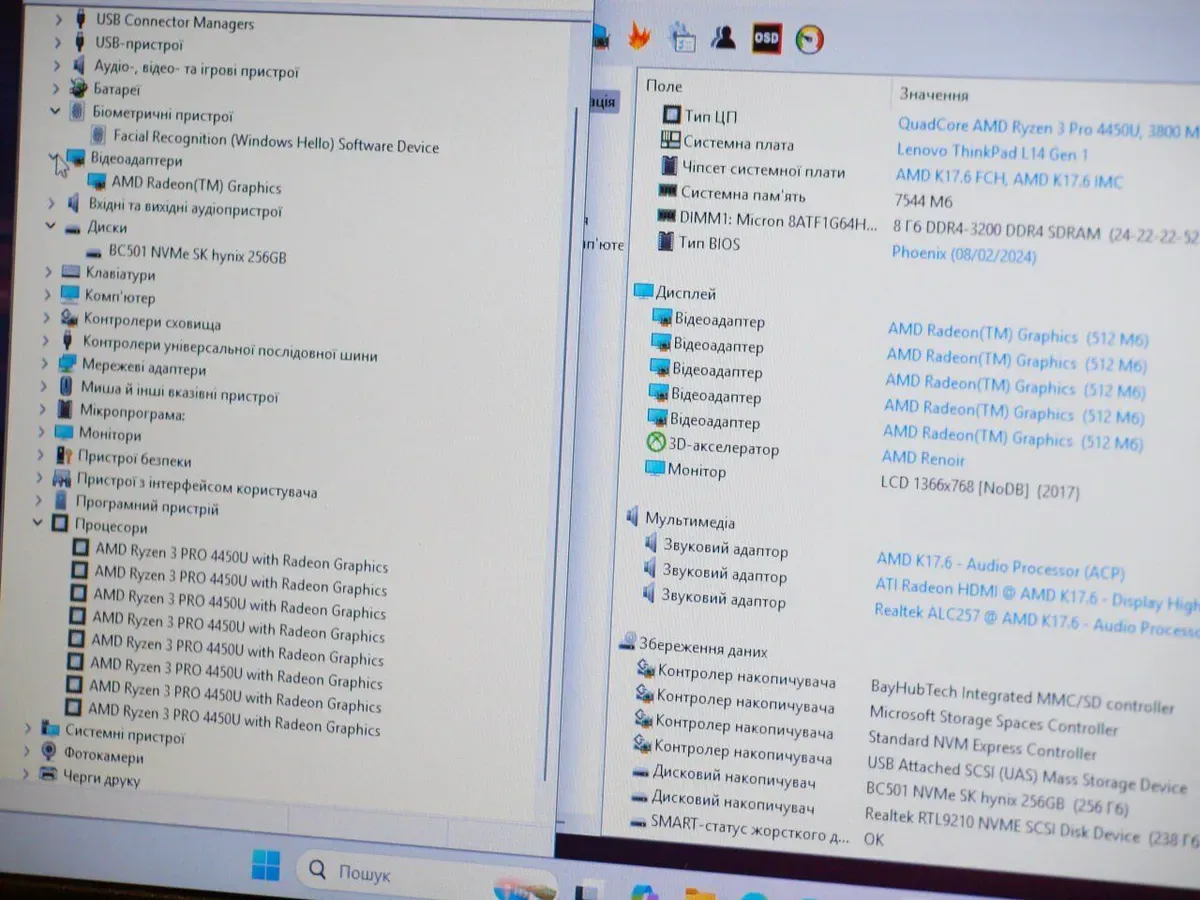 - Графіка: інтегрована AMD Radeon Graphics (до 1792 MB з ОЗП)