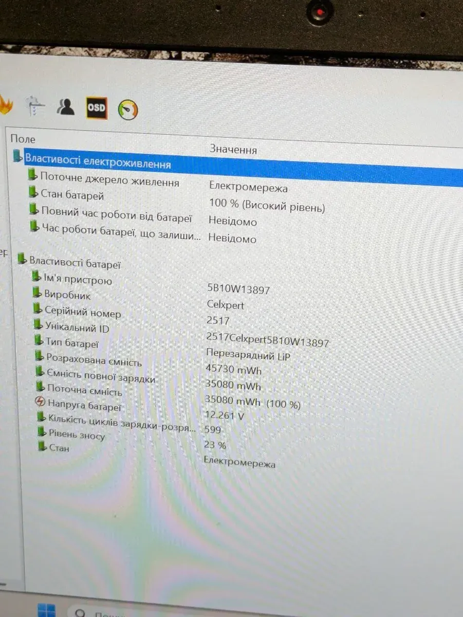 - Батарея: щонайменше 4-6 годин у режимі звичайного навантаження; рівень зносу 25%