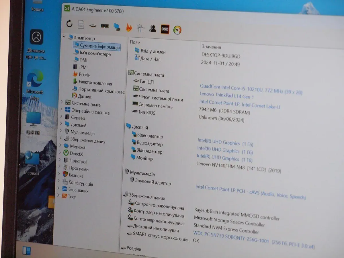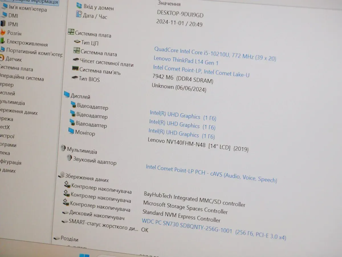 - Модель: Lenovo ThinkPad L14 Gen 1