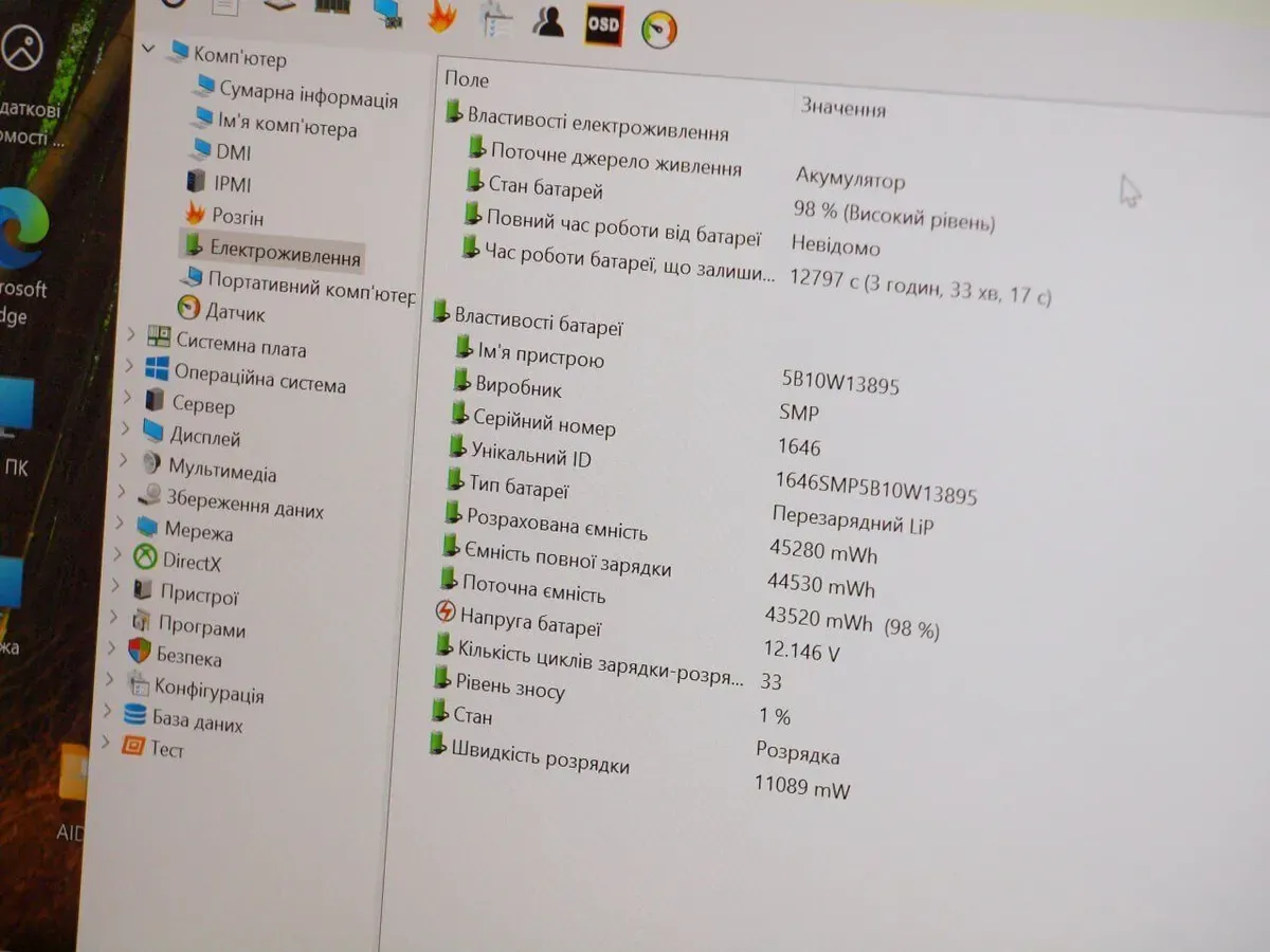 - Батарея: щонайменше 4-6 годин у режимі звичайного навантаження; рівень зносу 1%