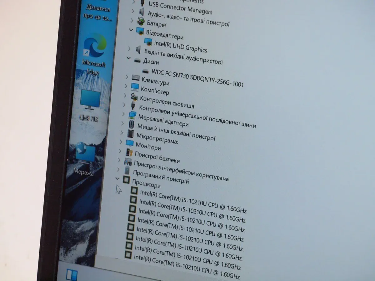 - Процесор: Intel Core i5-10310U (4 (8) ядра по 1.7 - 4.4 GHz); Cache Memory 6 MB