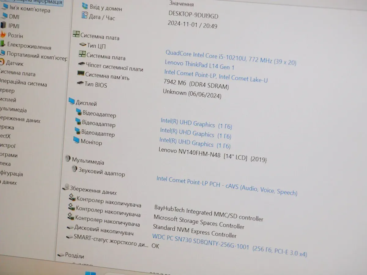 - Модель: Lenovo ThinkPad L14 Gen 1