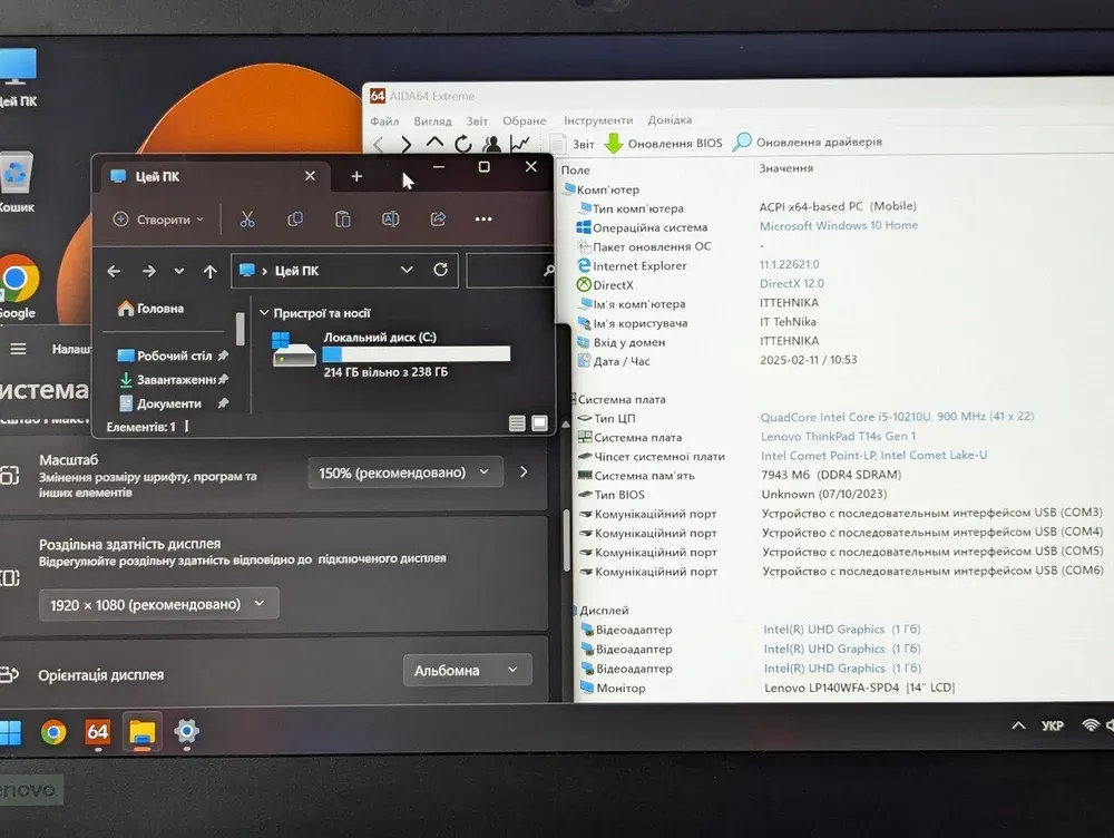Інтегрована відеокарта:Intel UHD Graphics
