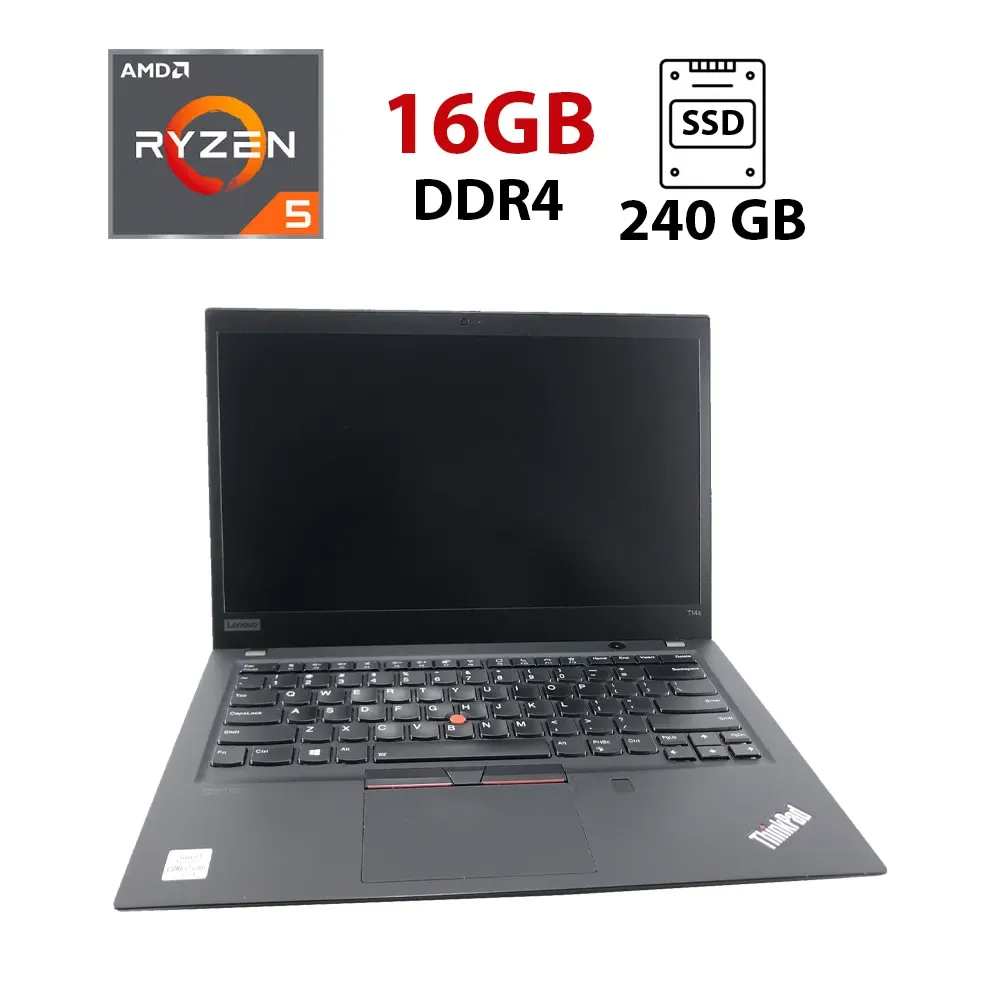 Ультрабук Lenovo ThinkPad T14s Gen1 / 14" (1920x1080) IPS / AMD Ryzen 5 Pro 4650U (6 (12) ядер по 2.1 - 4.0 GHz) / 16 GB DDR4 / 240 GB SSD / AMD Radeon RX Vega 6 Graphics / WebCam б/в