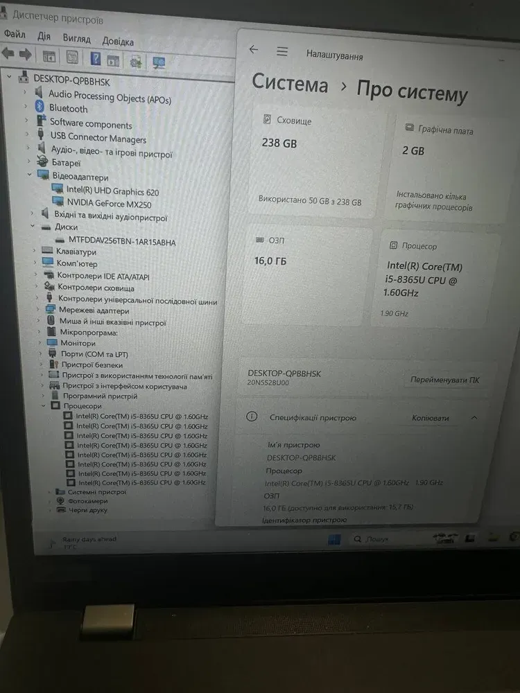- Графіка: дискретна nVidia GeForce MX250, 2 GB GDDR5, 64-bit