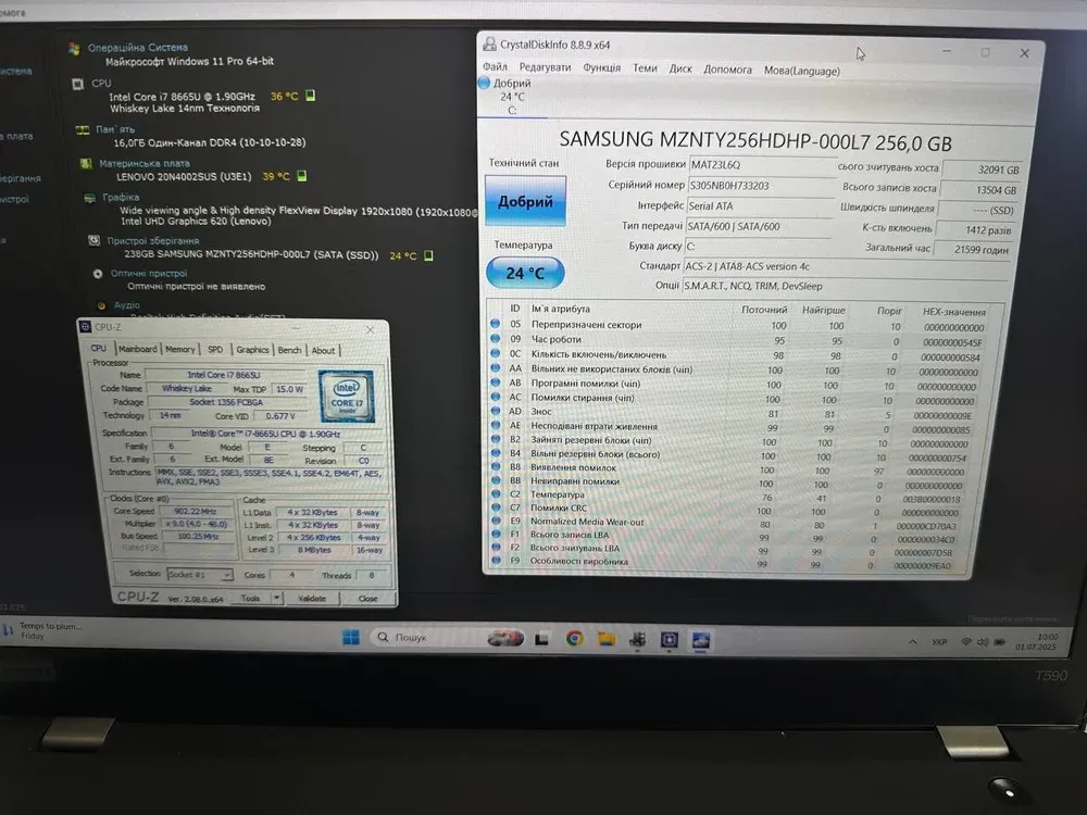- Процесор: Intel Core i7-8665U (4 (8) ядра по 1.9 - 4.8 GHz), 8 MB Smart Cache