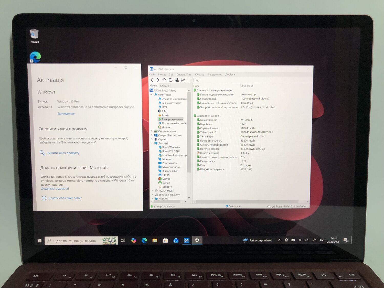 - Комплектація: ноутбук, зарядний пристрій, наклейки на клавіатуру