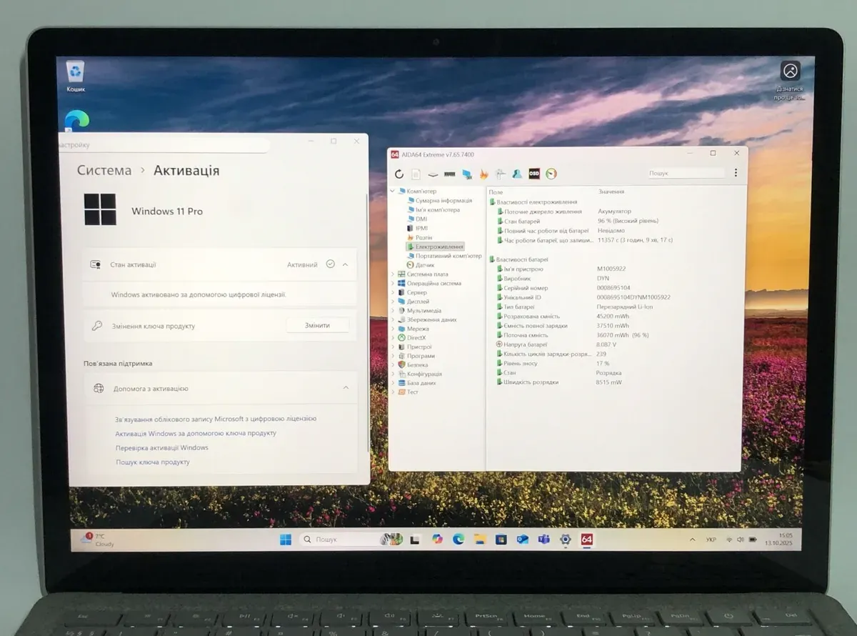 - Комплектація: ноутбук, зарядний пристрій, наклейки на клавіатуру