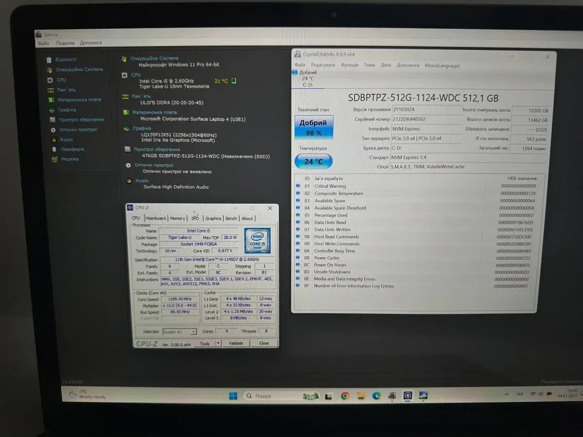 - Процесор: Intel Core i5-1145G7 (4 (8) ядра по 2.6 - 4.4 GHz), 8 MB Smart Cache
