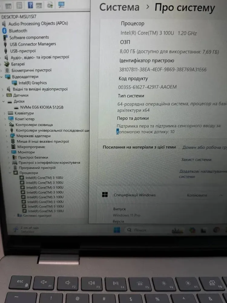 - Процесор: Intel Core 3 100U (6 (8) ядер по 1.2 - 4.7 GHz), 10 MB Smart Cache