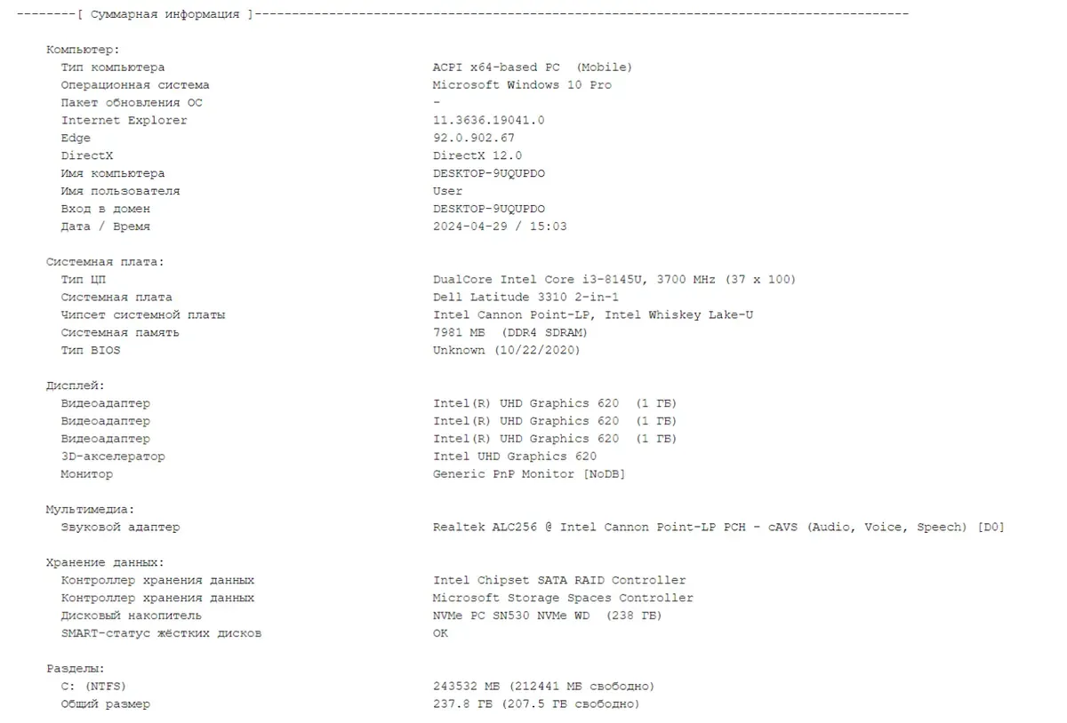 - Постійна пам'ять: 240 GB SSD M.2 NVMe (WD SN530)
