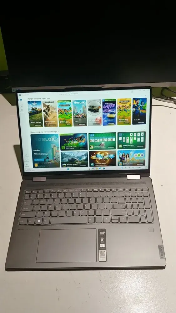 - Комплектація: ноутбук, зарядний пристрій, наклейки на клавіатуру