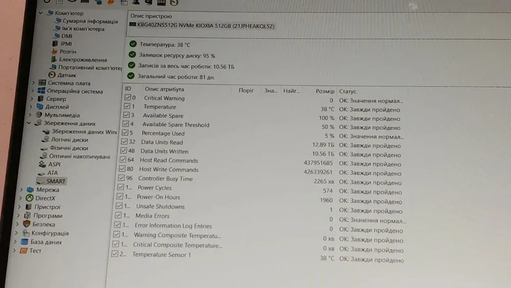 - Оперативна пам'ять: 8 GB DDR5; розпаяна на материнській платі; частота 6400 MHz
