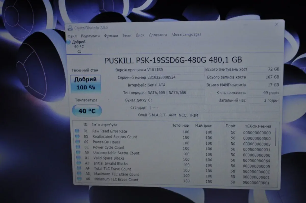 - Постійна пам'ять: 480 GB SSD (нова комплектуюча)