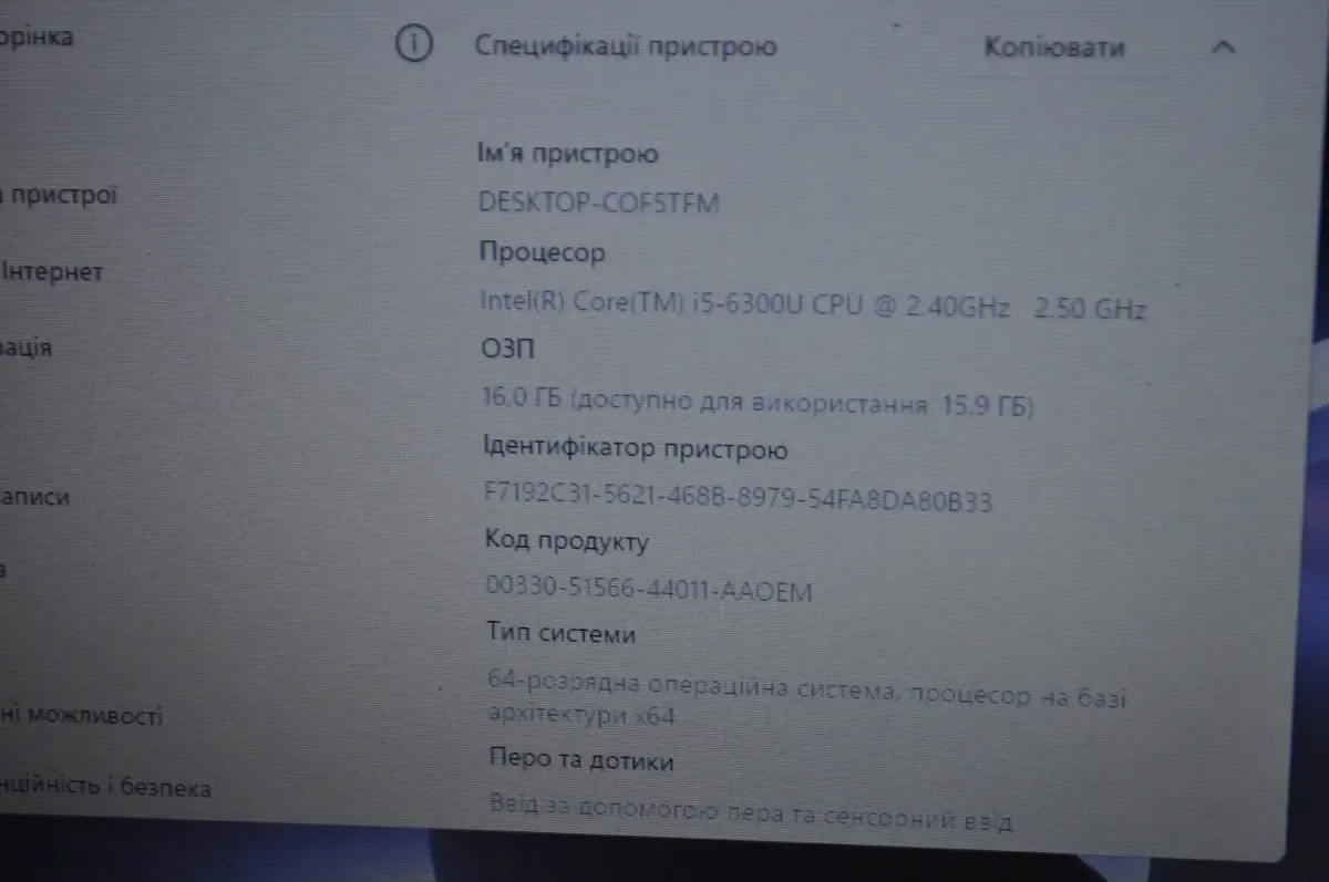 - Комплектація: ноутбук, зарядний пристрій, наклейки на клавіатуру
