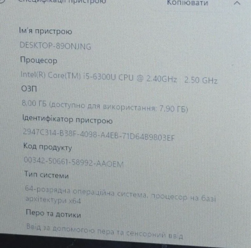 - Комплектація: ноутбук, зарядний пристрій, наклейки на клавіатуру
