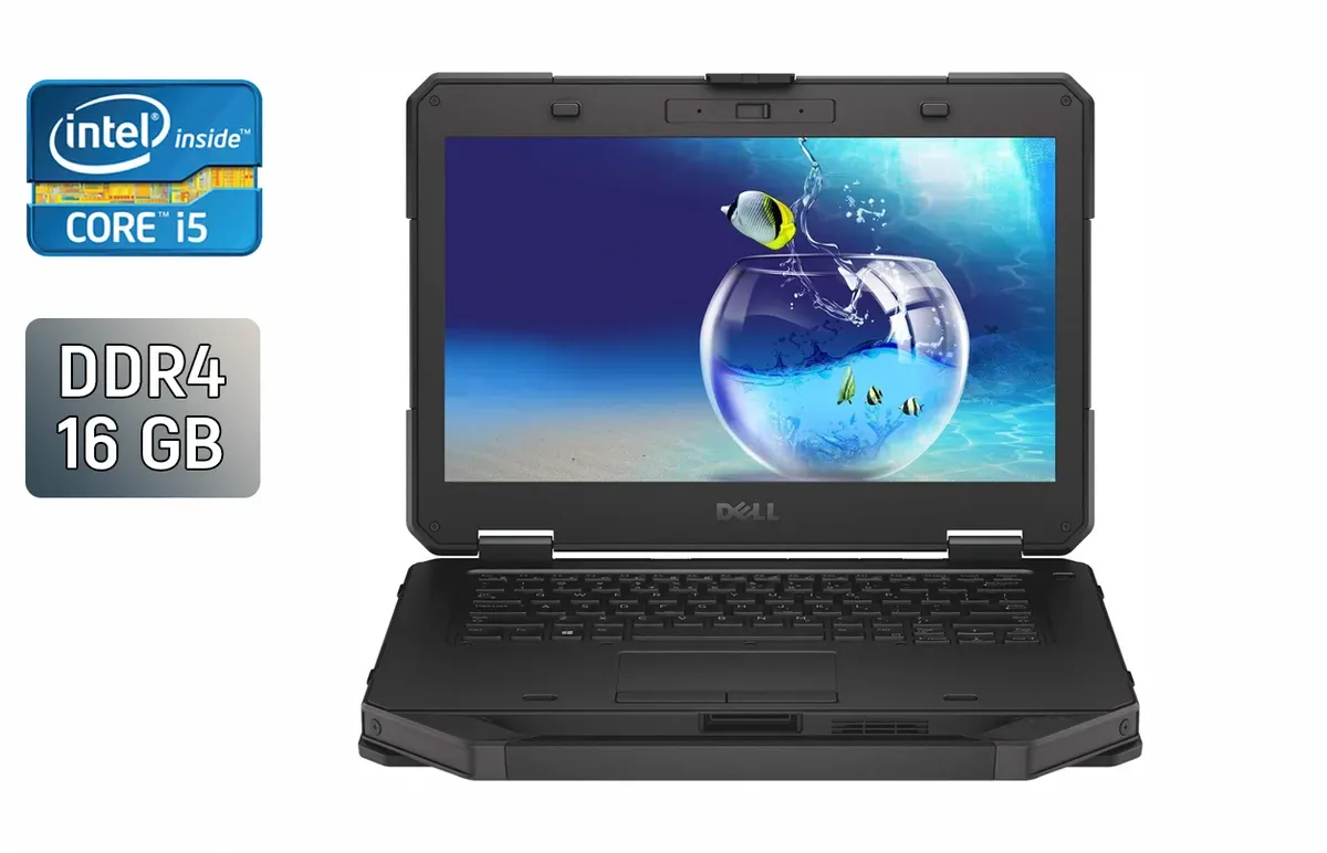 Захищений ноутбук Б-клас Dell Rugged Latitude 5414 з екраном 14" (1920x1080) IPS на базі процесора Intel Core i5-6300U та оперативною пам'яттю 16 GB DDR4 для екстремальних умов і туризму