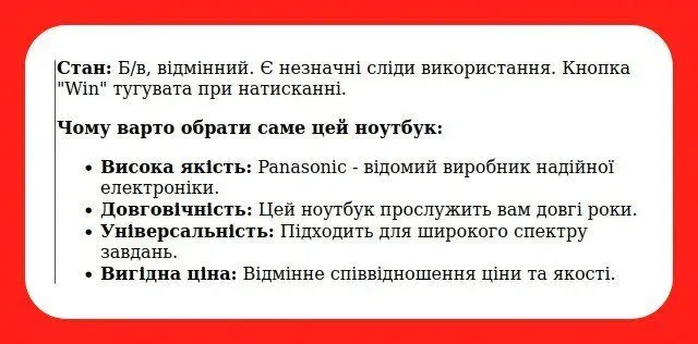 - Стан: б/в (клас Б: із зусиллям натискається клавіша "Win");