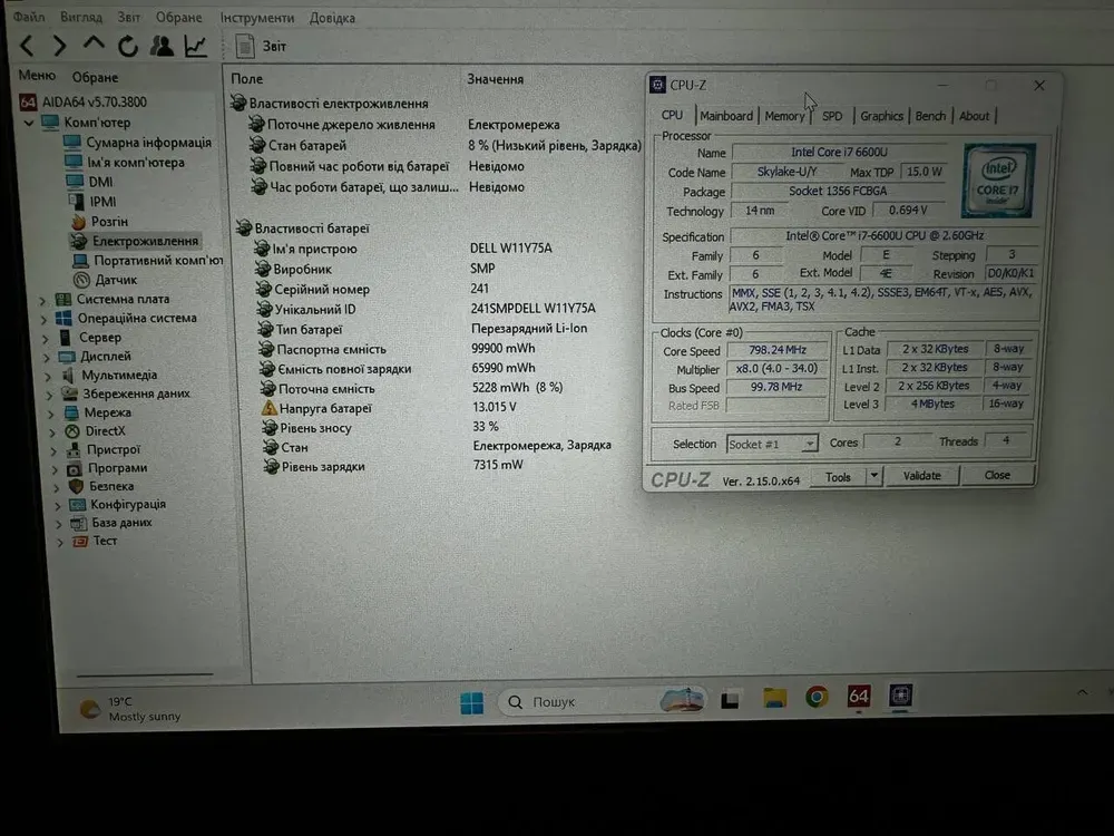 - Процесор: Intel Core i7-6600U (2 (4) ядра по 2,6 - 3,4 ГГц), 4 МБ Smart Cache