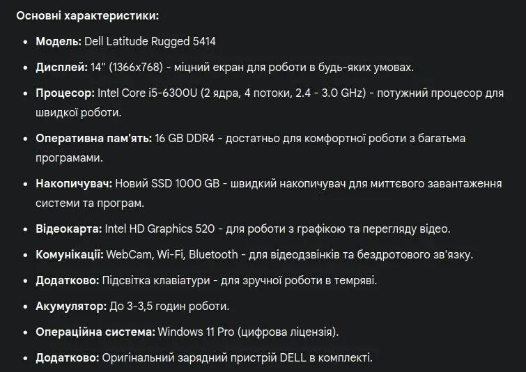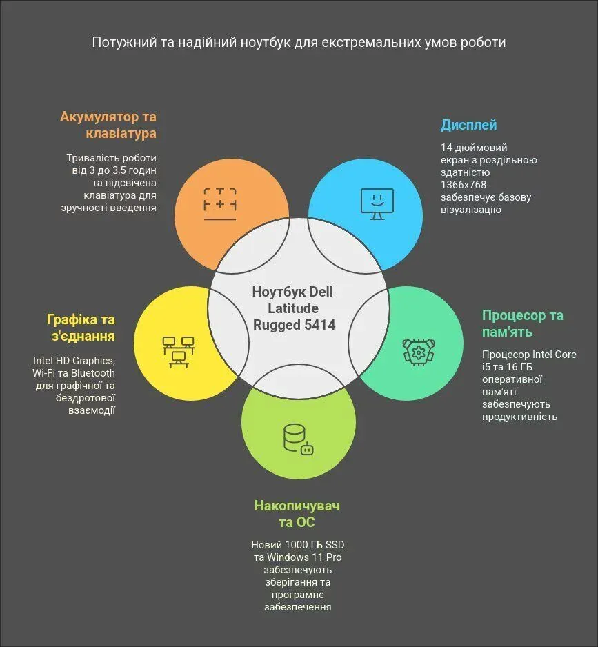 Захищений ноутбук Dell Latitude 5414 Rugged з екраном 14" (1366x768) TN на базі процесора Intel Core i5-6300U та оперативної пам'яті 16 GB DDR4 для офісної роботи та домашніх завдань