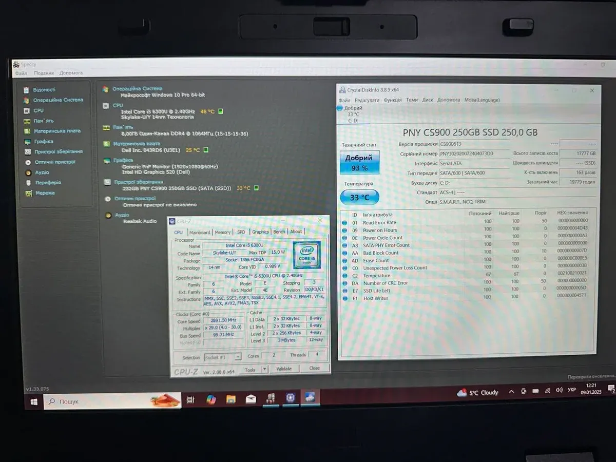 - Процесор: Intel Core i5-6300U (2 (4) ядра по 2.4 - 3.0 GHz), 3 MB Smart Cache