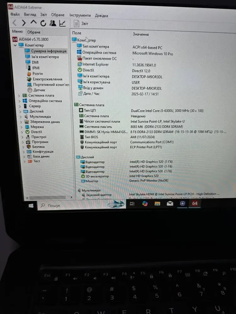 - Графіка: інтегрована Intel HD Graphics 520 (до 1792 MB з ОЗП)