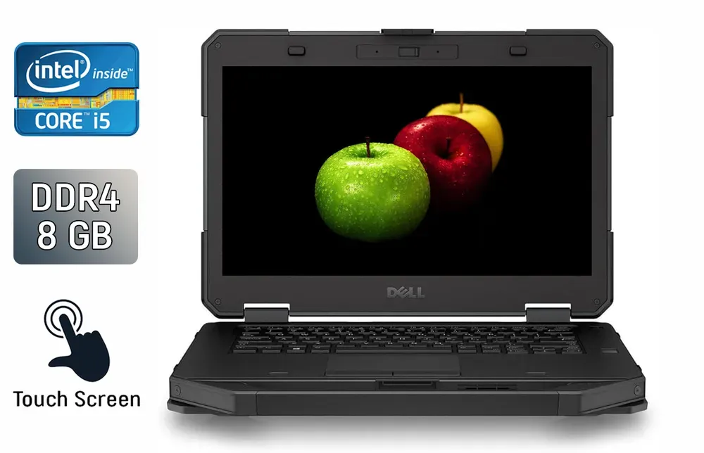 Захищений ноутбук Dell Rugged Latitude 5414 з екраном 14" (1920x1080) IPS Touch на базі процесора Intel Core i5-6300U та оперативною пам'яттю 8 GB DDR4 для екстремальних умов і туризму
