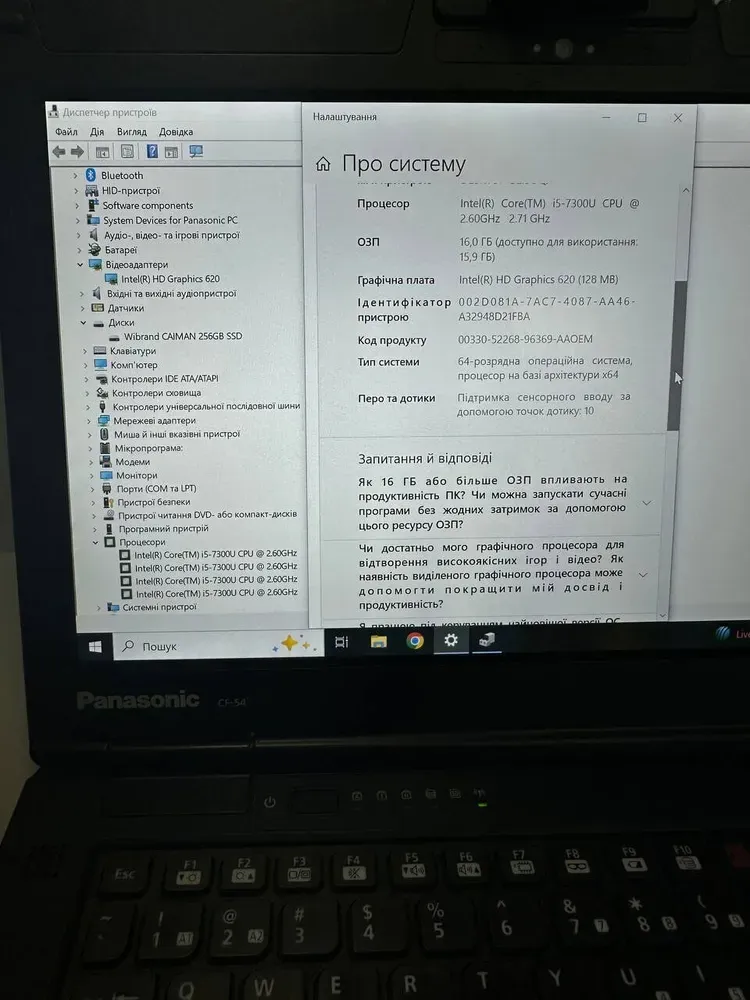 Захищений ноутбук-трансформер Б-клас Panasonic Toughbook CF-54 з екраном 14" (1920x1080) TN на базі процесора Intel Core i5-7300U та оперативної пам'яті 16 GB DDR3 для роботи та домашніх завдань