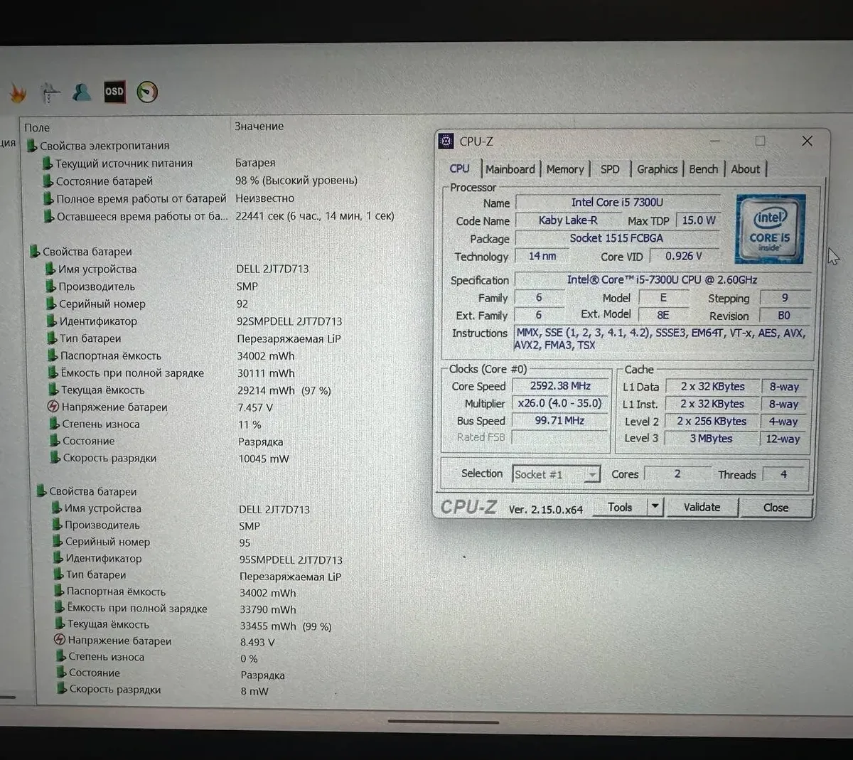 Процесор:Intel Core i5-7300U (2.6 - 3.5 ГГц)
