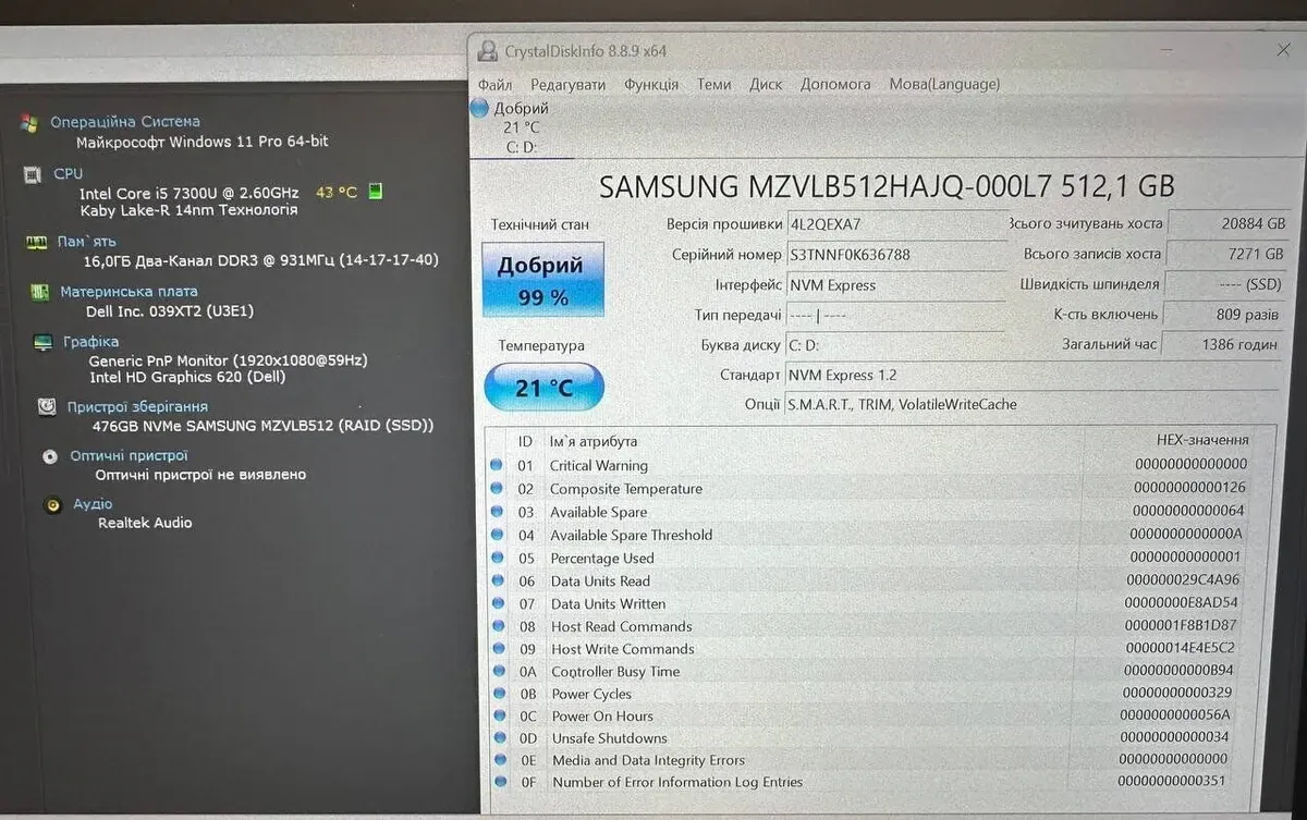 - Графіка: інтегрована Intel HD Graphics 620 (до 1792 МБ з ОЗУ)