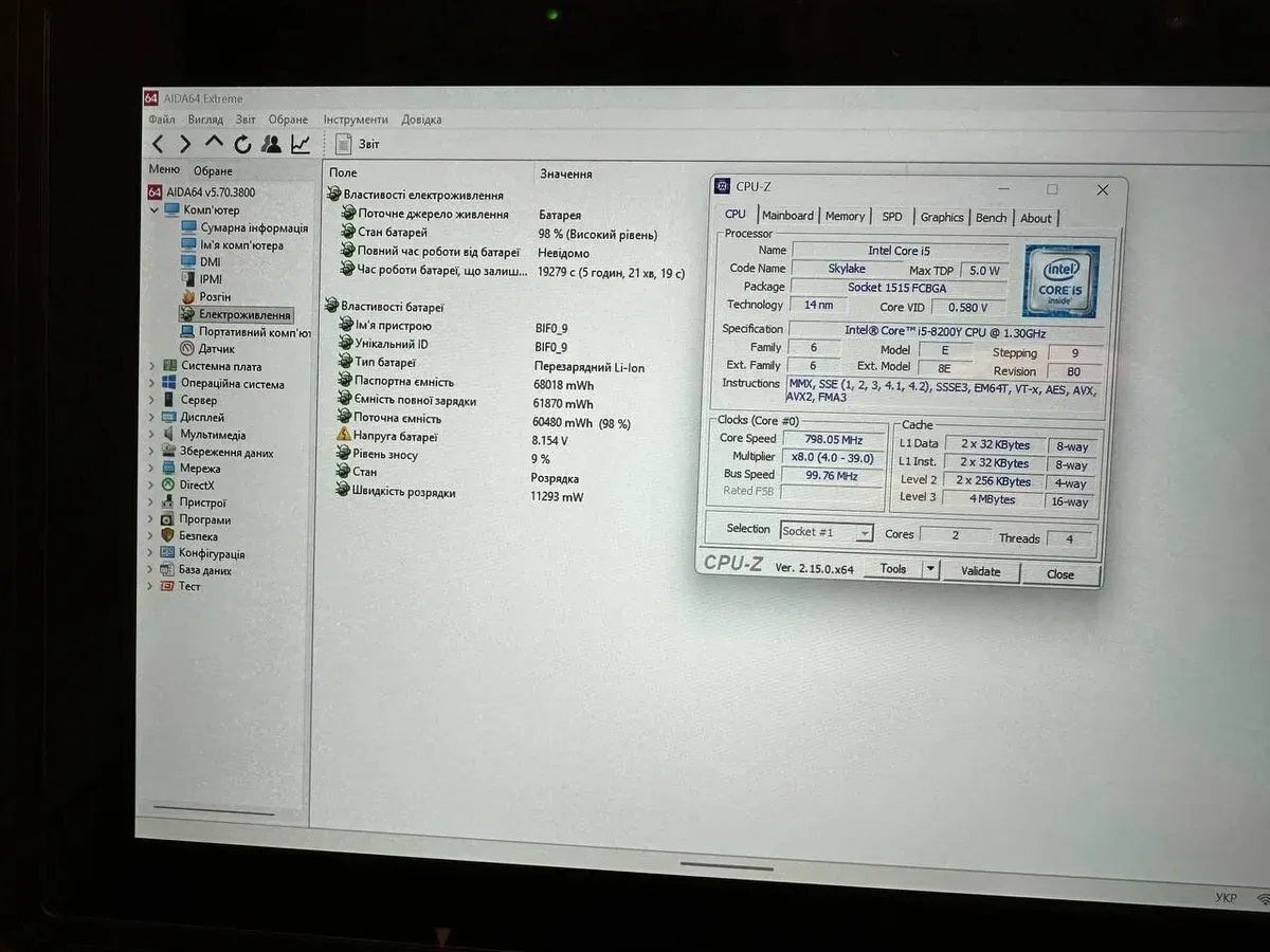 - Процесор: Intel Core i5-8200Y (2 (4) ядра по 1.3 - 3.9 GHz), 4 MB Smart Cache