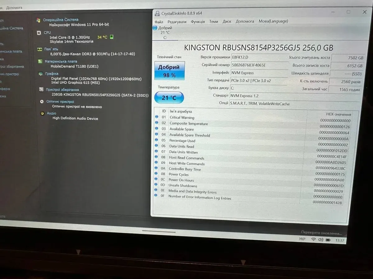 - Графіка: інтегрована Intel HD Graphics 620 (до 1792 MB з ОЗП)