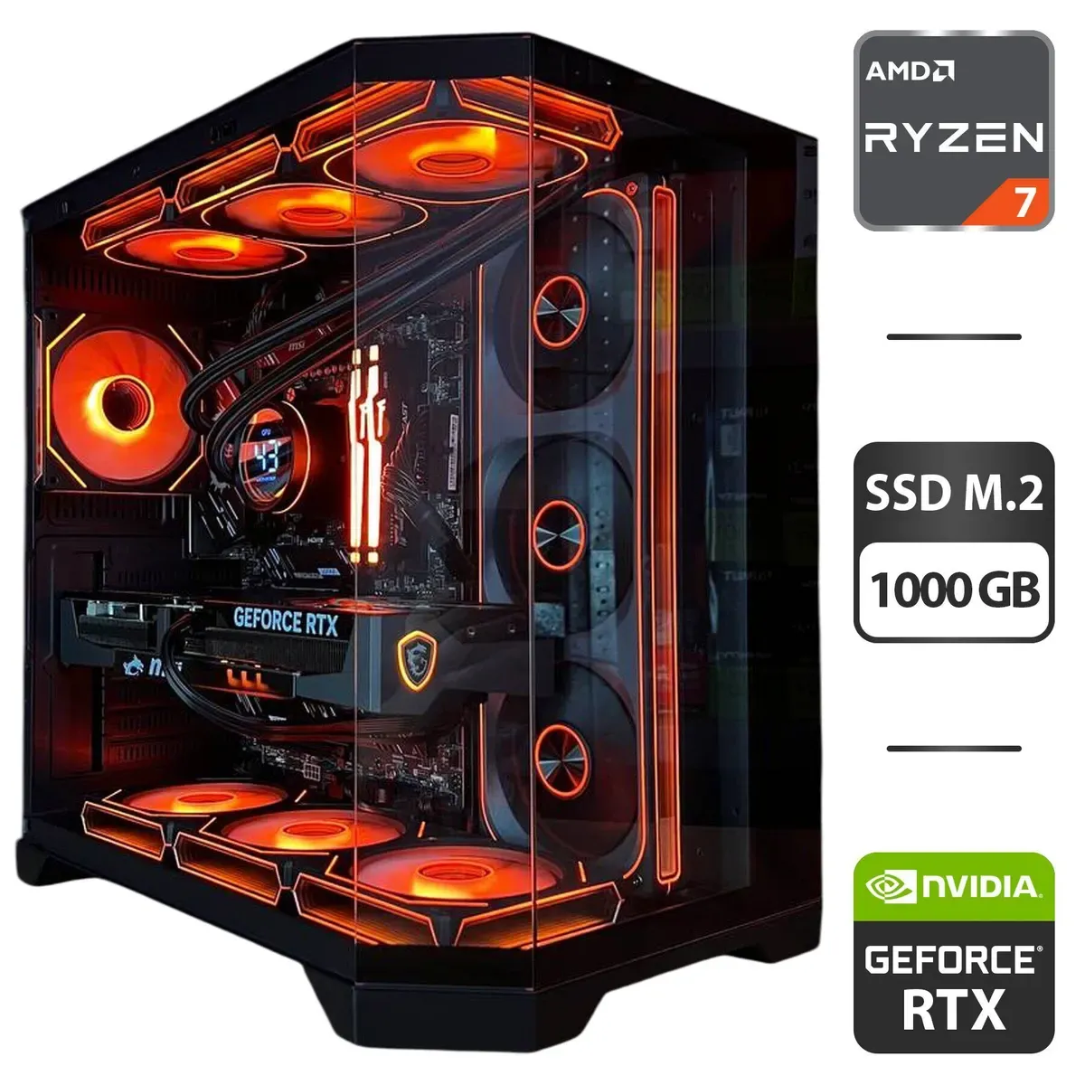 Збірка на замовлення:ігровий ПК GameMax Hype-M Black Tower / AMD Ryzen 7 7800X3D (8 (16) ядер по 4,2 - 5,0 ГГц) / 32 ГБ DDR5 / 1000 ГБ SSD M.2 / nVidia GeForce RTX 5070 Ti, 16 ГБ GDDR7, 256-bit / 850W